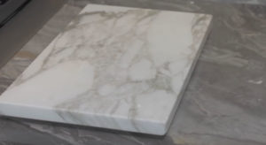 durability factor go ahead and make a cutting board out of the same material and sit it in those hot spots to protect it now we’re looking at quartz countertops they’re extremely consistent you know where you’re going to get versus working with marble which of course is natural and of the earth however it is fairly unpredictable the other reason we love quartz is its affordability it’s about 50 percent less than the Calcutta or the Carrara it’s imitating and lastly you’ve got to love the durability it is made of 93% limestone mixed with a tough resin so that you just can’t beat the durability so if it’s granite or bust then you might want to consider reducing the polished shiny effect and honing the countertop that way it reduces the amount of drama in the granite itself and you could also consider river washing the top of your granite that way it gets more of an organic natural feel back to rule number three while the countertops could contribute to a room in some grand fashion when it