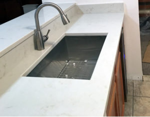 Many people are looking for the difference between granite and quartz when they are deciding for a countertop material, so we create this post to help to find the answer. Granite is by far the most popular material that is used in countertops kitchens today. Because granite is a natural material quarried out of the earth and then sliced up into the pieces that we call slabs, that we see, use, and are familiar with countertops it’s really important that you actually go to the warehouse and pick the right slab that will get used in your project. If you try to pick granite from a sample you going to find that the top that shows up at your home probably isn’t going to look like the sample that you looked at. Granite does require a sealer and we recommend you sealed it once a year. There are some sealers that are warranted for much more than one year, but they are more expensive. Granite is priced in levels. You’ll have level one, two, and three or level A, B, and C. Same concept either way, but One or A will be the lost cost granite and the prices go up as you go up the levels. The quality of the granite doesn’t go up based on the price. If you pay more for granite it isn’t a higher quality or more durable granite. Think of it as a semi-precious stone: the less of it there is, the more it’s going to cost. Some of the exotic granites that are more expensive actually break a little easier. This means they break more often in fabrication, and that drives up the cost as well.